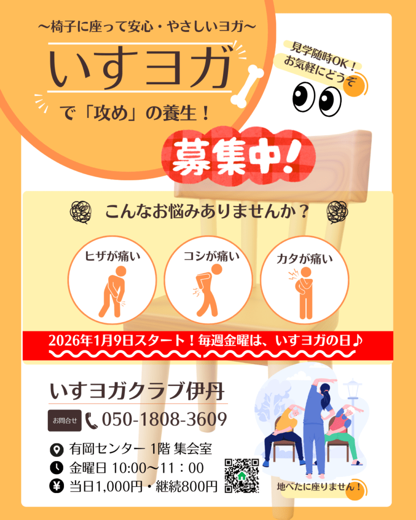明日からまた「いすヨガクラブ伊丹」もスタートします!