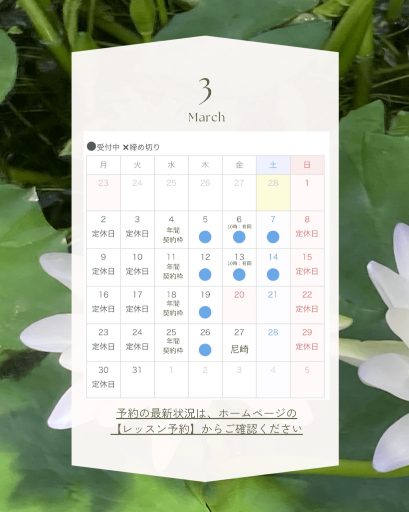 3月も心と体をゆるめる時間をご一緒できたら嬉しいです。