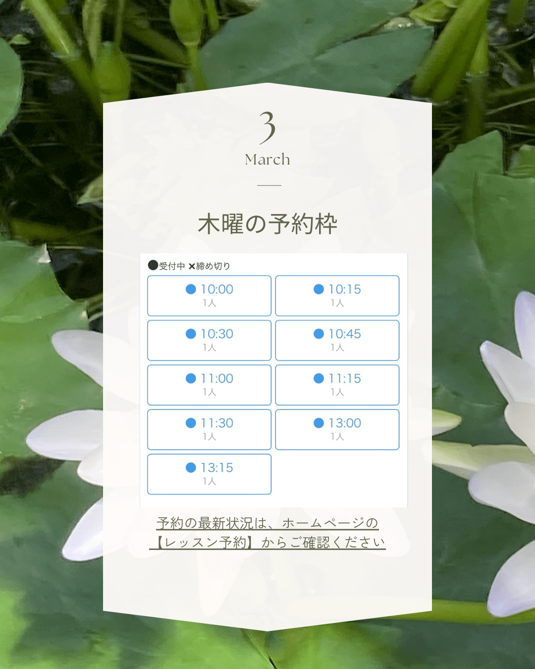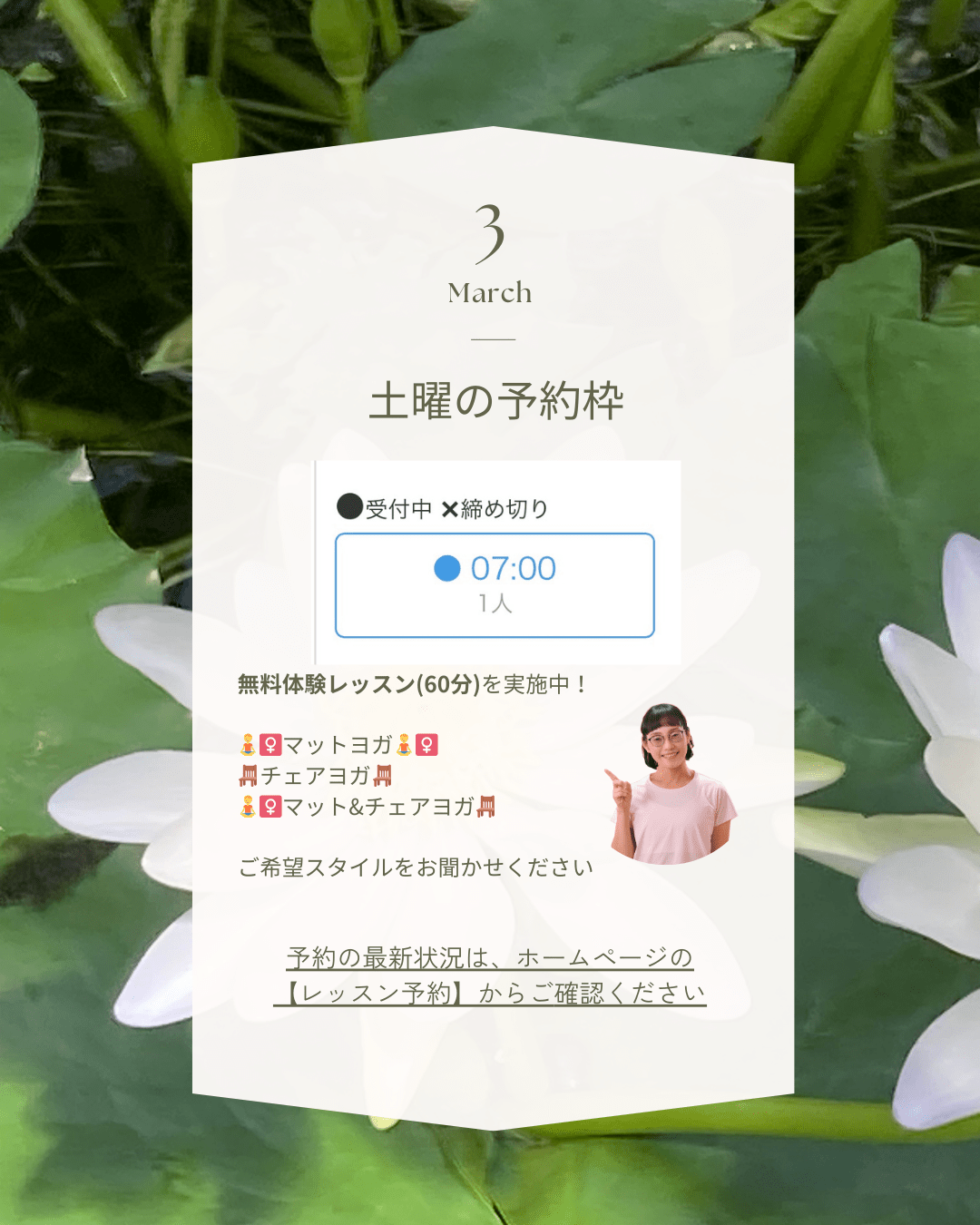 3月も心と体をゆるめる時間をご一緒できたら嬉しいです。